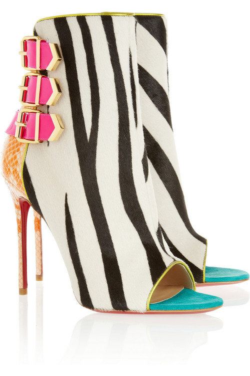 $1,995 Christian Louboutin Triboclou Zebra-Print Calf Hair and Python Ankle Boots
