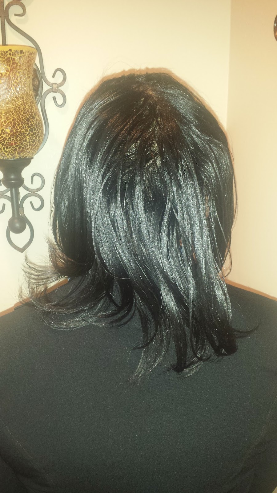 This is my hair when I was a freshman in college (2010/2011) and clearly you can see that my hair was past my shoulders and healthy. Well since I really did not have a hair stylist while I was away at college my hair just became unhealthy, do to me not getting a trim and treating it the way I was suppose to. So getting back to my home town, I gave my sister a call and visit so she could get my hair back on the right track. My stylist/sister put a very good relaxer to my hair to pull my hair back to what it is use to (I was never a natural kind of girl) and what that she applied a deep conditioning treatment to my hair.