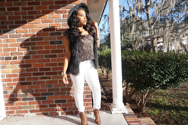Vest: JC Penny | Shirt: Wet Seal | Pants: Charlotte Russe | Heels: JustFab | Hat: Big Lots