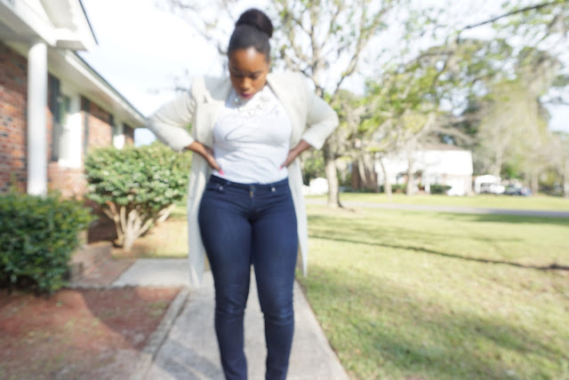 This "High Maintenance" t-shirt is easy to pair with any outfit, rather you want to dress it down or dress it up. I chose to dress up my t-shirt a bit (especially since I am a High Maintenance Girl) by pairing it with my favorite dark denim jeans, Jones of New York long-tailored blazer, and my pink Antonio Milani strap heels.