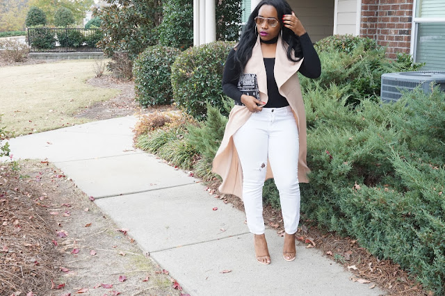 Of course I had to add a nice duster to go along with it. Fashion Nova's "Oh Fancy" duster in taupe makes everything flow just right with this look, and is perfect for layering for Fall.