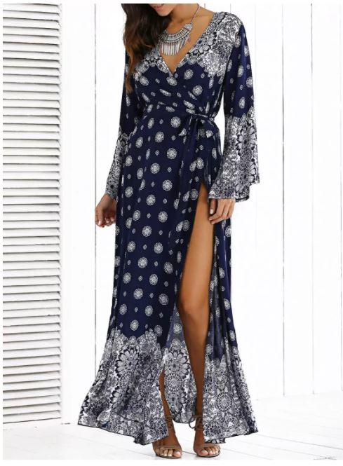 This long bohemian maxi dress was one of my favorite, considering the high thigh split. Trust hunny, I live for some leg action hehe. Not only that, but the semi plunging neckline is great for showing off your latest choker or long necklace. I can easily pair this maxi dress with some cute sandals or some strappy heels.
